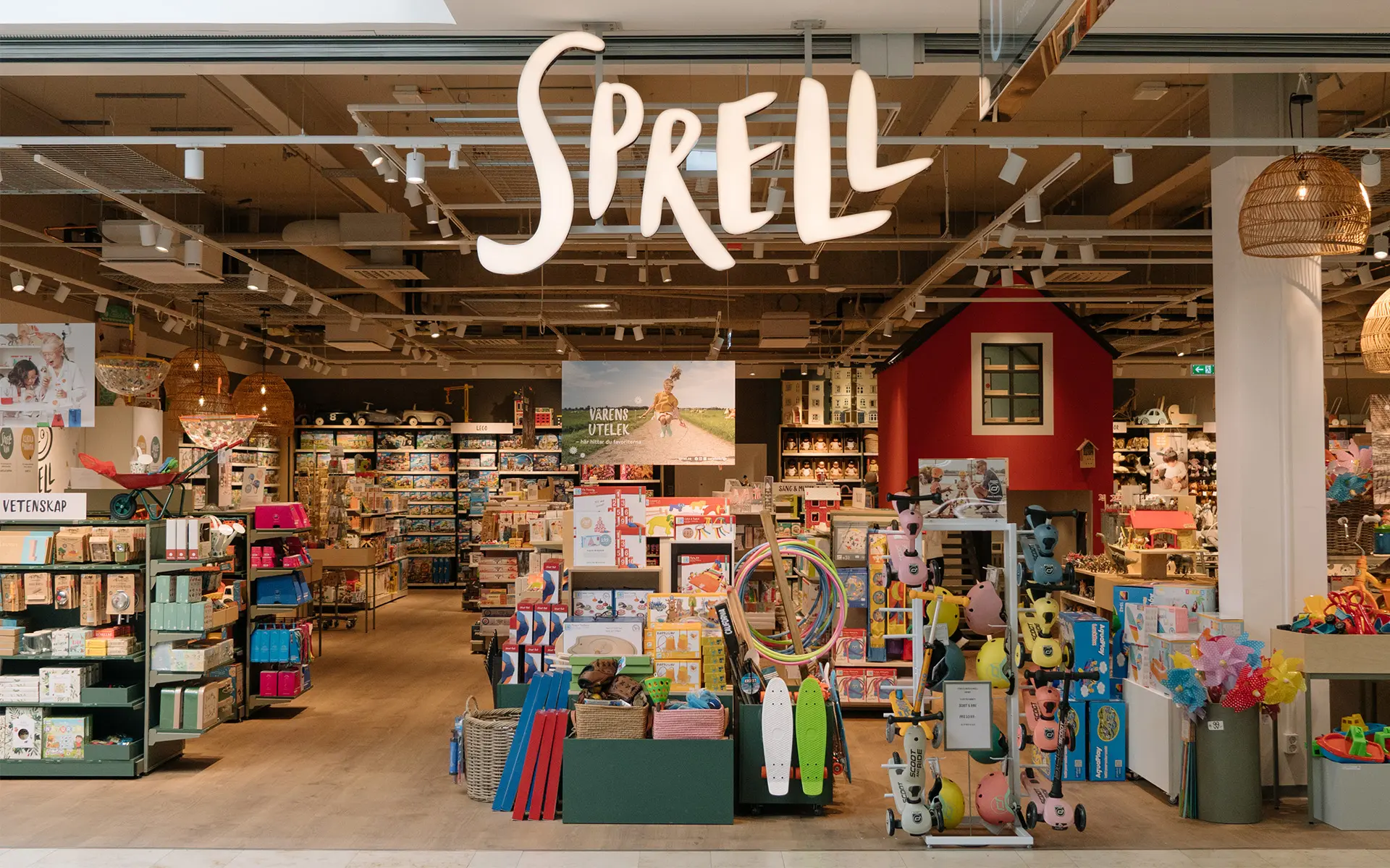 Siden den gang har Sprell vokst, i takt med barna som leker, lærer og utforsker. Flere butikker kom til, og etter hvert også nettbutikk, slik at Sprell kunne være tilgjengelig for små og store over hele landet. I 2022 pakket vi ryggsekken og tok steget videre ut i verden. Vår første butikk i Sverige åpnet i Stockholm, på Westfield Täby Centrum, og året etter åpnet vi e-handel. Plutselig fikk hele Sverige Sprell.