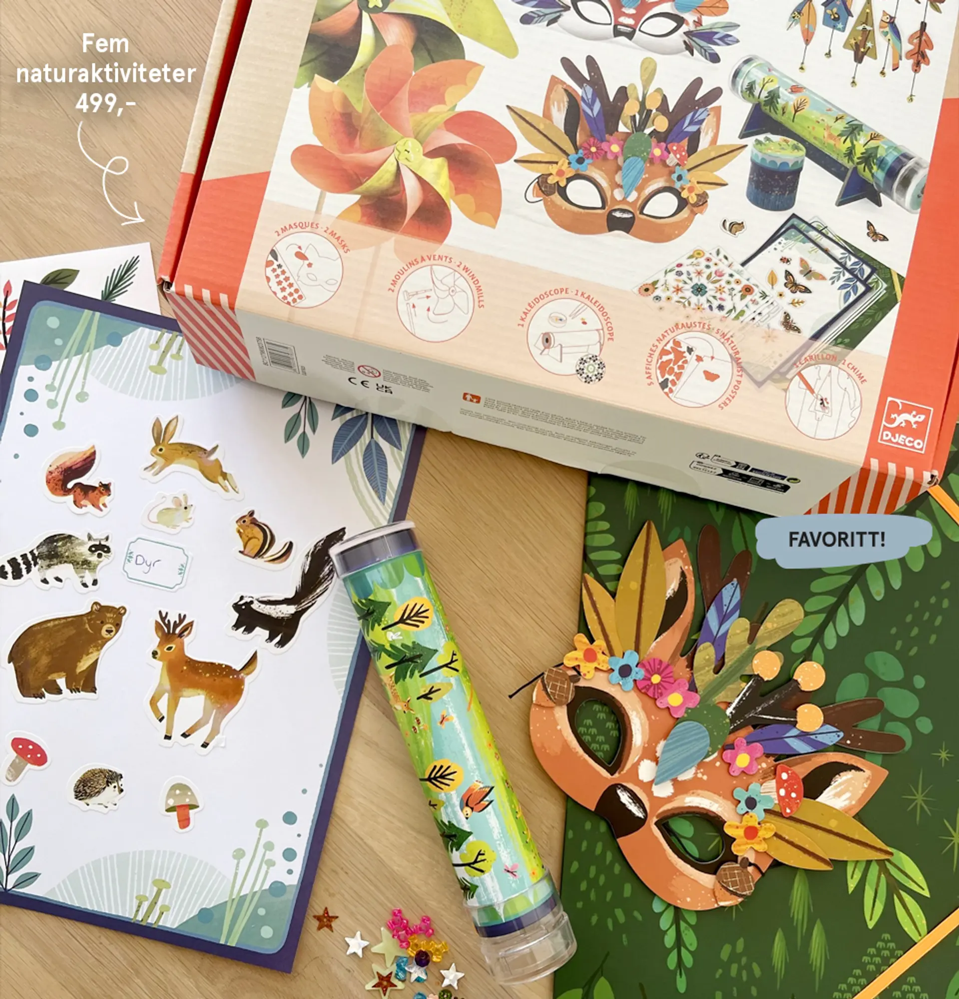 Oppdag naturens magi med dette fargerike hobbysettet fra Djeco! Utforsk, skap og lær med 5 forskjellige aktiviteter inspirert av naturen – alt samlet i én spennende eske. Lag din egen vindmølle som snurrer i vinden, et klokkespill som spiller søte toner, fantasifulle dyremasker eller et fargerikt kaleidoskop.