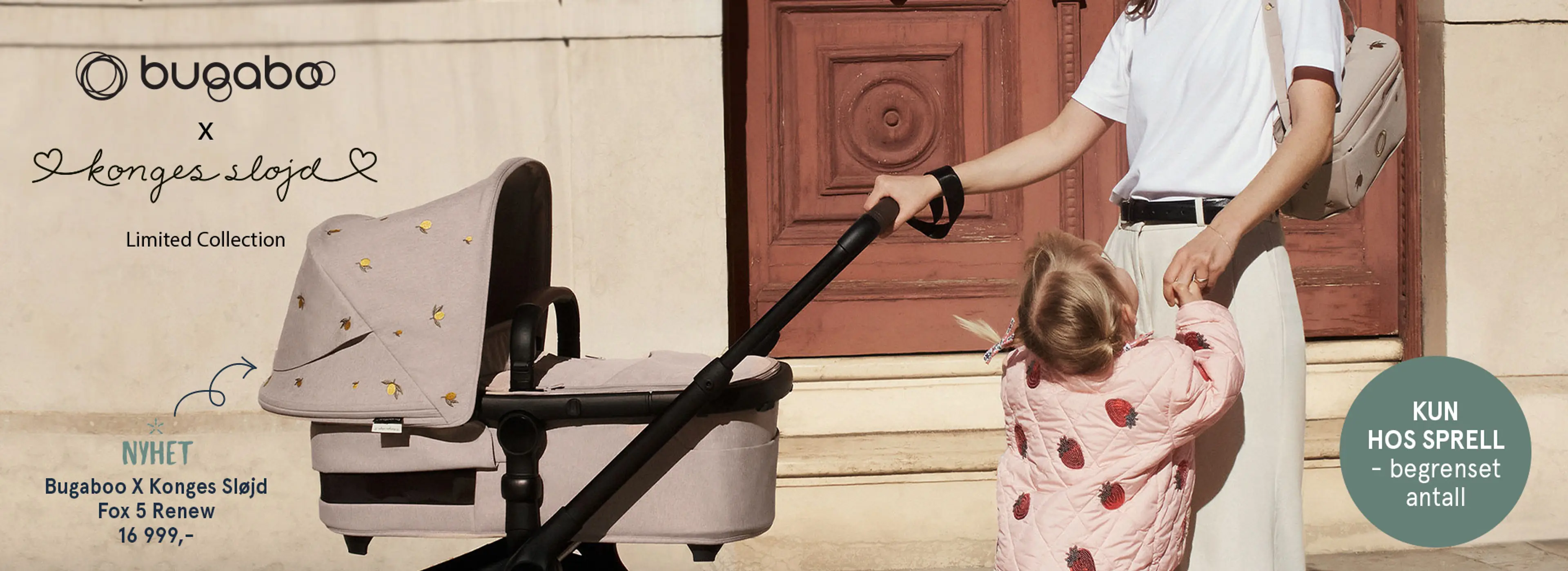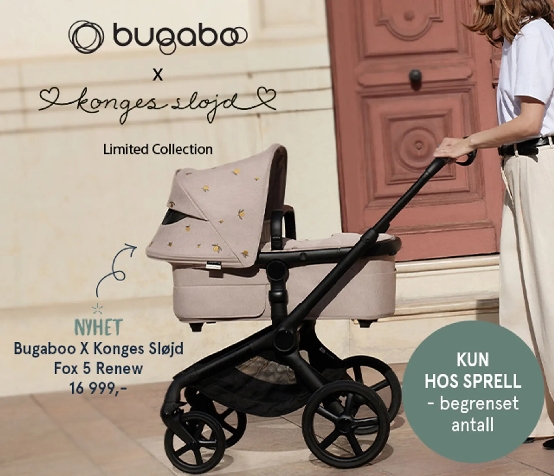 Sprell er stolte av å presentere et eksklusivt samarbeid mellom to merkevarer som deler en lidenskap for kvalitet, funksjonalitet og tidløs estetikk. Bugaboo, kjent for sine innovative barnevogner og smarte løsninger for småbarnsforeldre, møter den lekne og elegante stilen til Konges Sløjd- eksperter på delikate tekstiler og barneprodukter med nostalgiske preg.