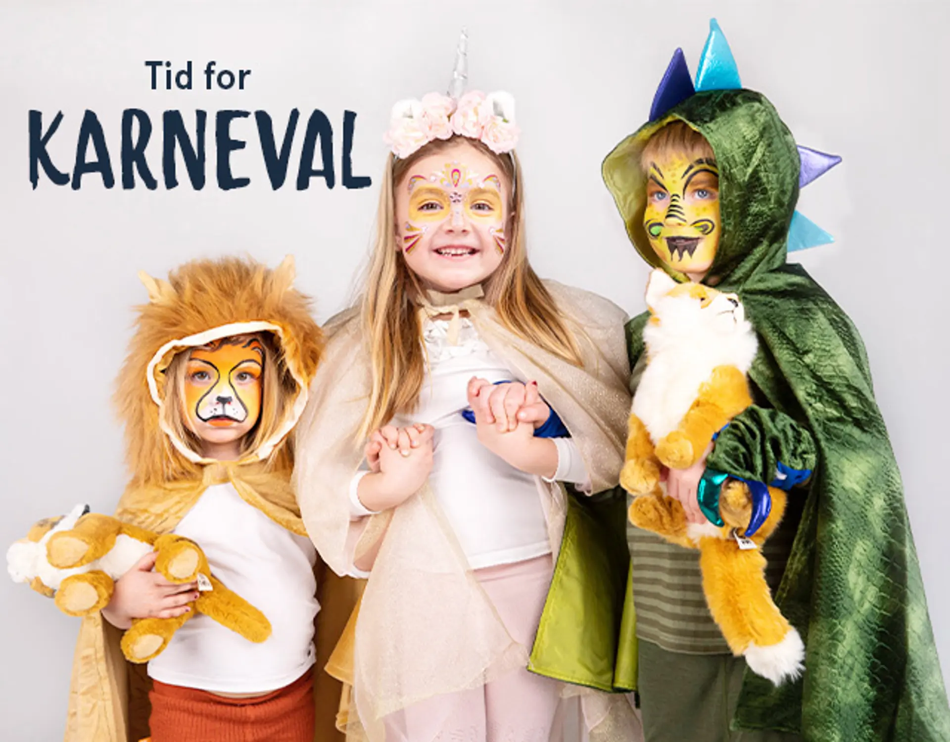 Barn elsker utkledning og å leve seg inn i en fantasiverden eller en historie. Denne rolleleken er en viktig del av barnas sosiale utvikling, og gir barna muligheten til å være en helt annen enn den de er ellers. Kanskje en løve, en tryllekunstner eller enhjørning? Vi har et stort utvalg av håndplukkede kostymer, ansiktsmaling laget for barns hud og masse gøyalt tilbehør.