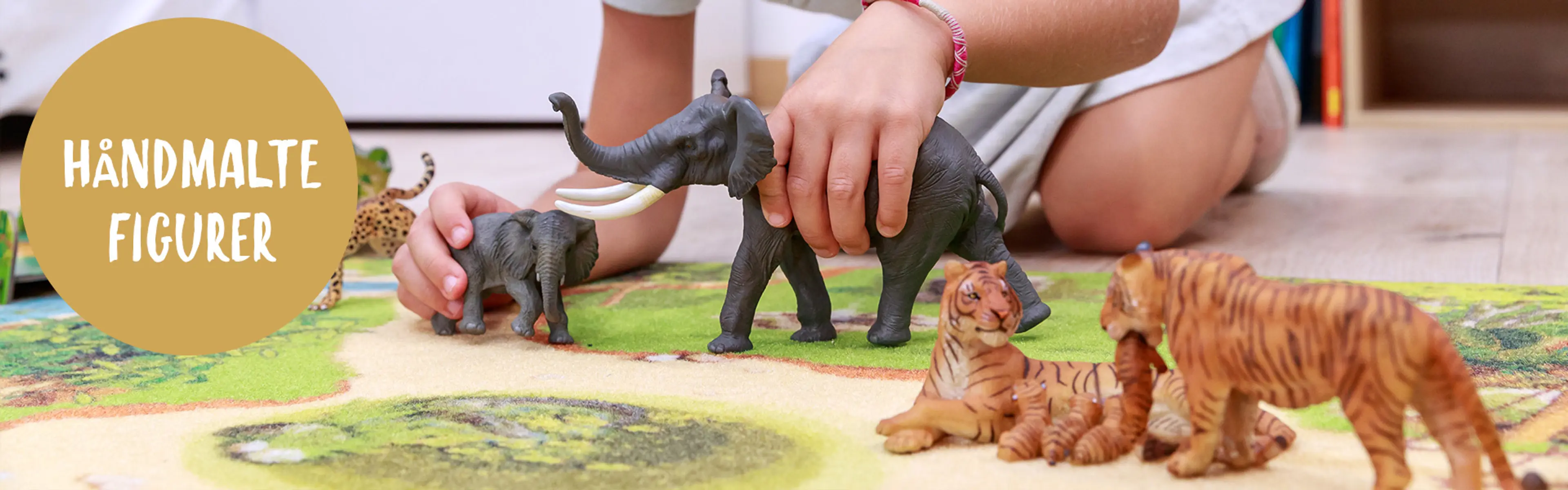 Her finner du et bredt utvalg av husdyr, jungeldyr, havdyr og bondegårdsdyr - både i form av kosete bamser og håndmalte miniatyrfigurer, som gir rom for både gøy lek og læring!