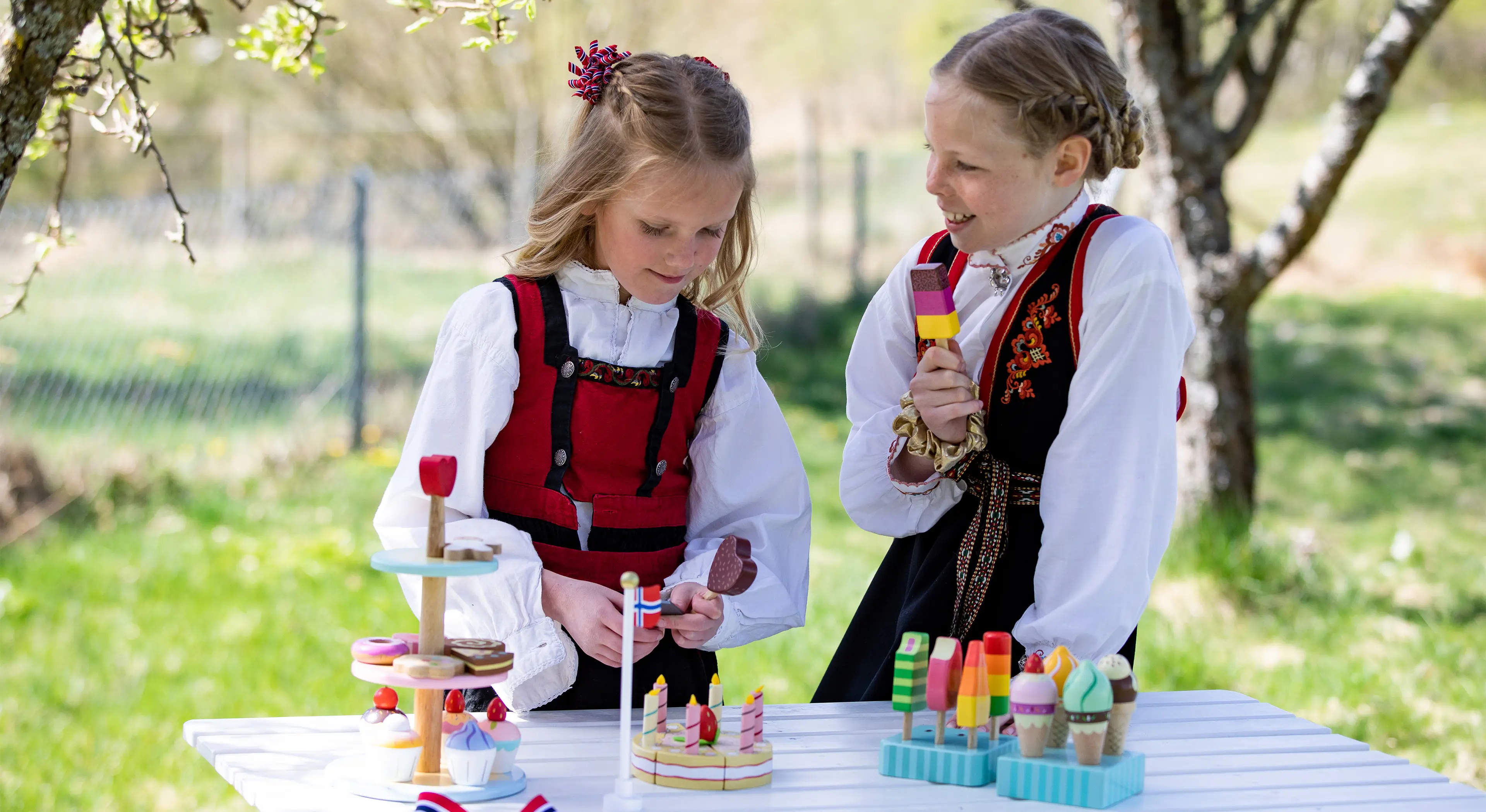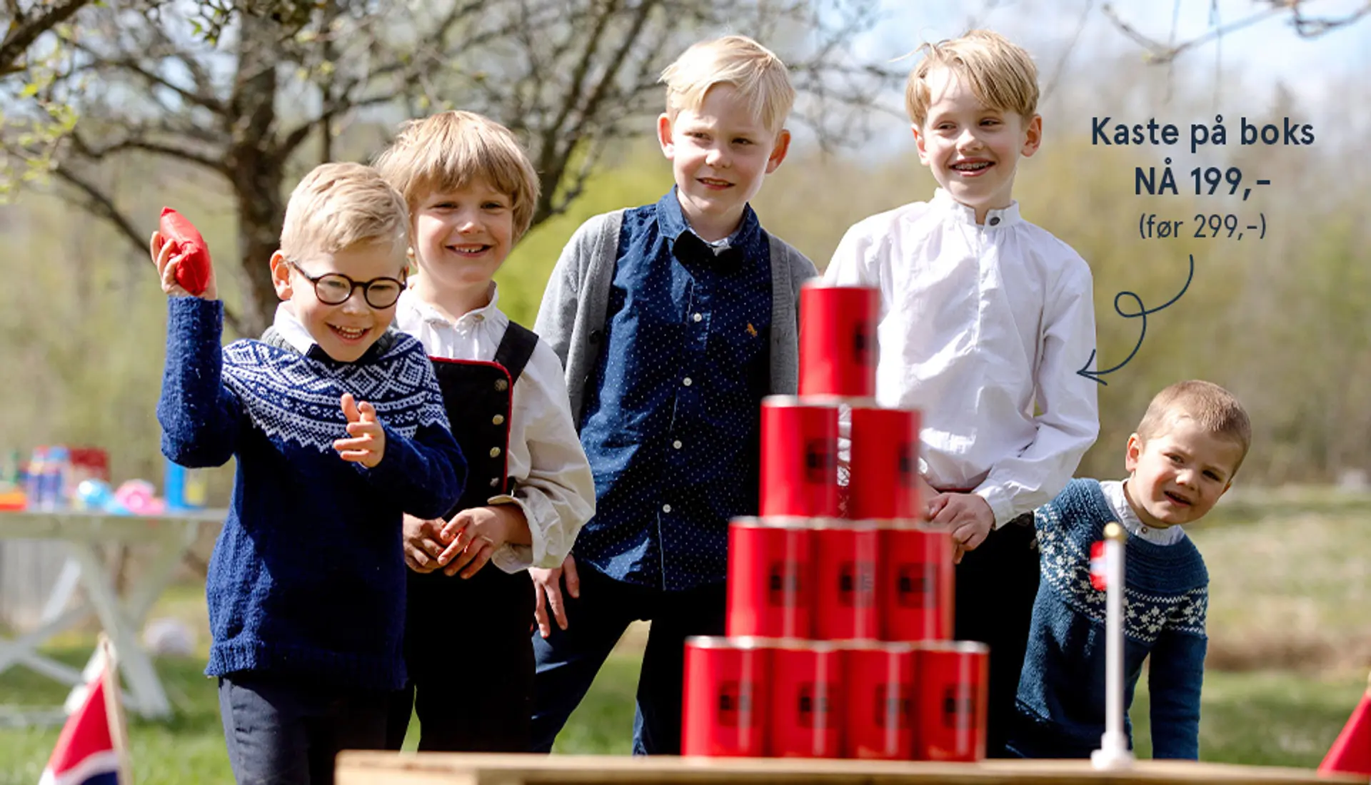 Del ut små premier til alle som deltar, og gjør feiringen ekstra festlig med pynt som bordflagg, rosetter, pins og 17. mai-sløyfer.