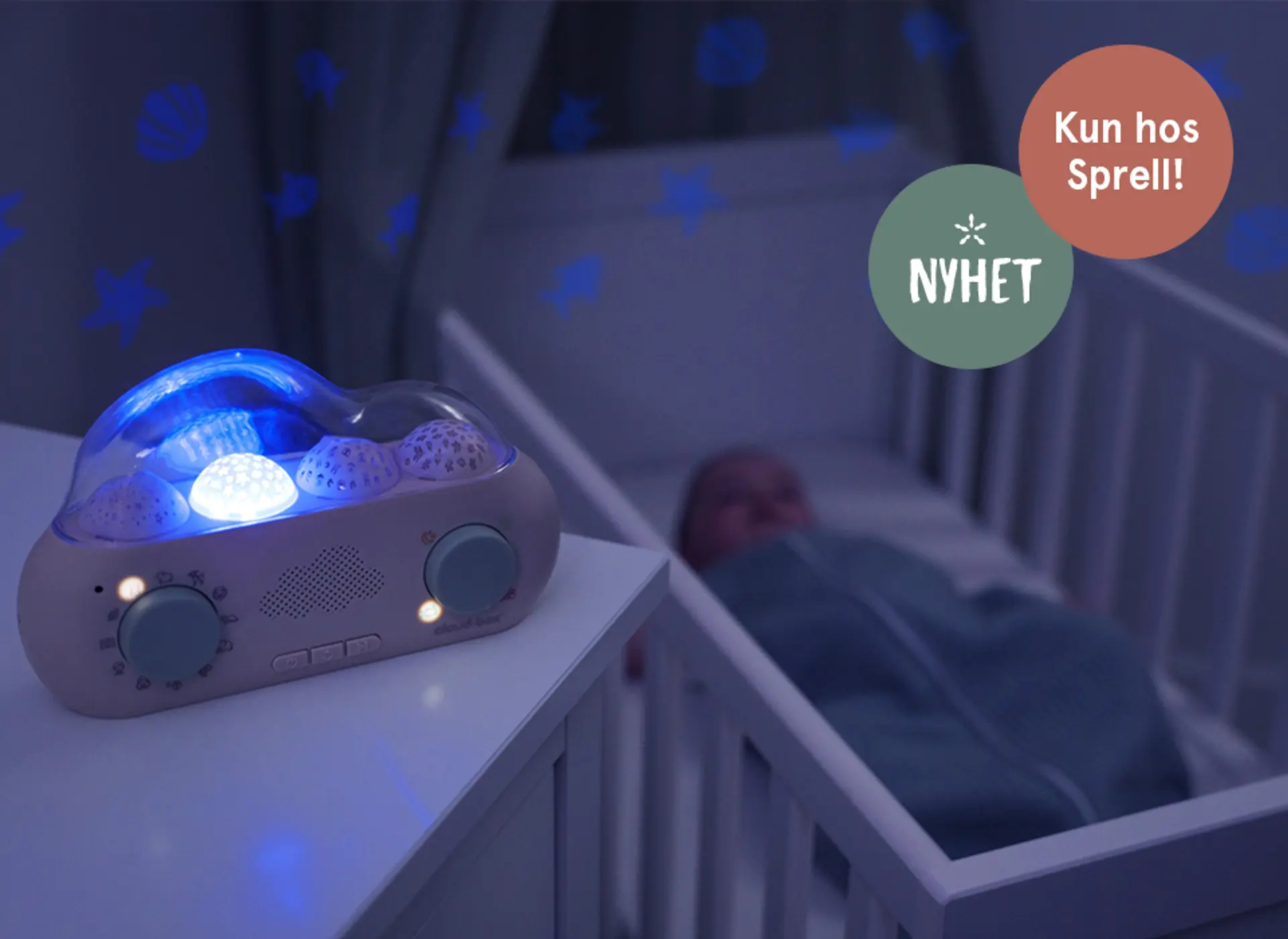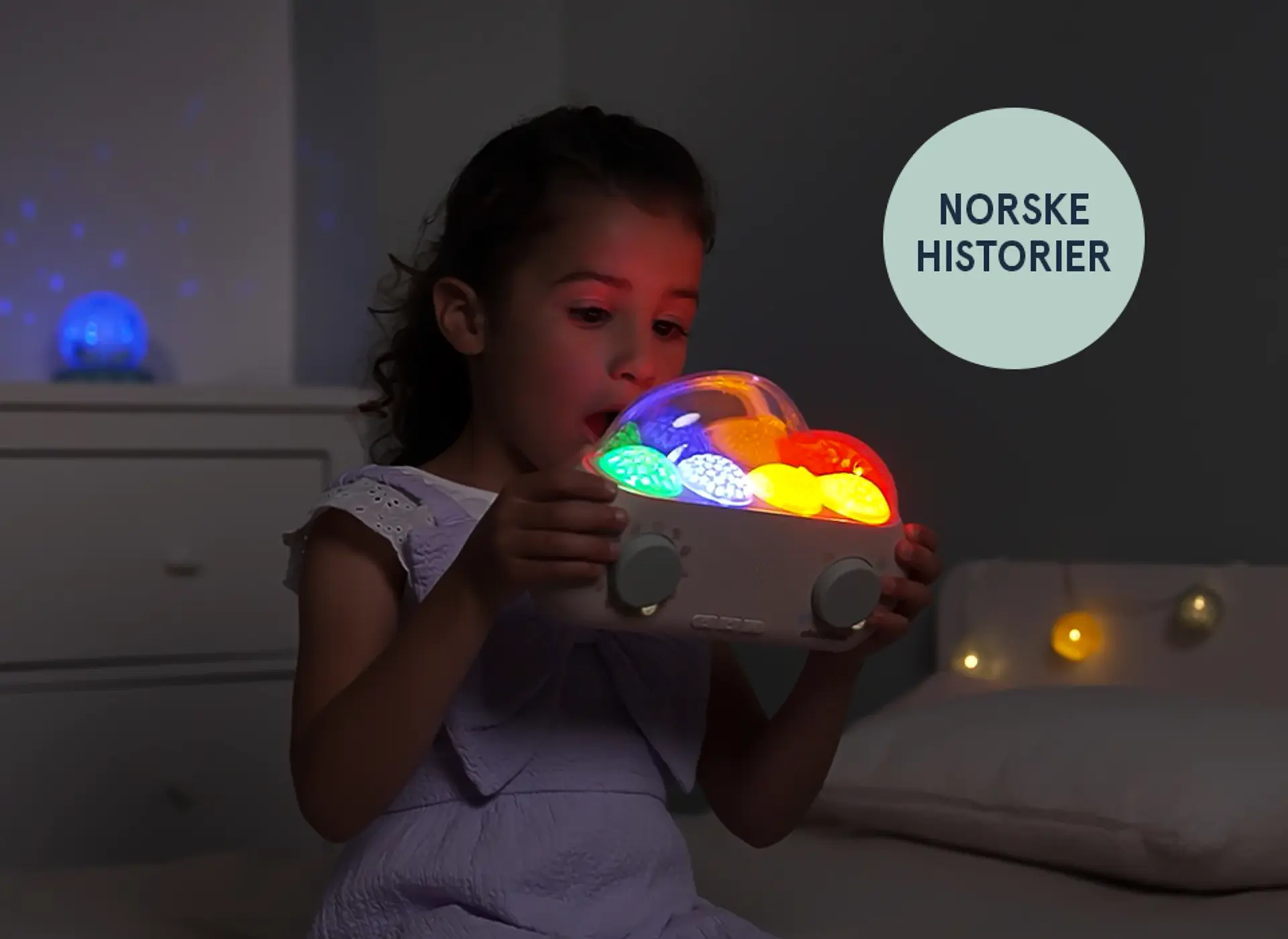 Cloudbox kombinerer beroligende historier, lysprojeksjoner og myke lyder for å skape en trygg og magisk atmosfære ved leggetid.