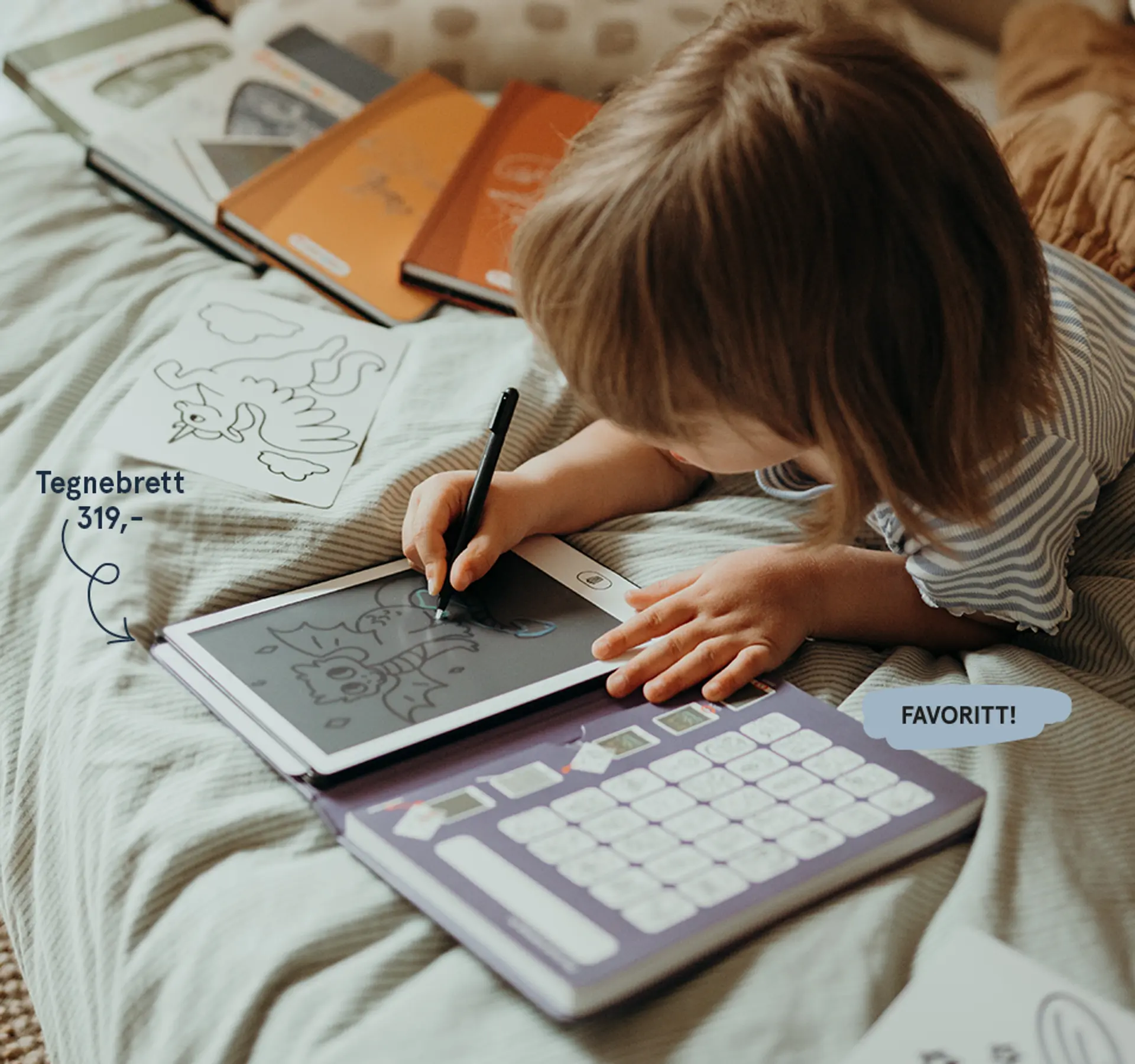 La barna utforske sin kreativitet med KIDYDRAW MINI – et bærbart tegnebrett som kombinerer lek og læring! Med 30 overførbare illustrasjoner i ulike temaer kan barna kopiere formene eller slippe fantasien løs på tegneflaten. Perfekt for reise, på hytta eller lek hjemme.