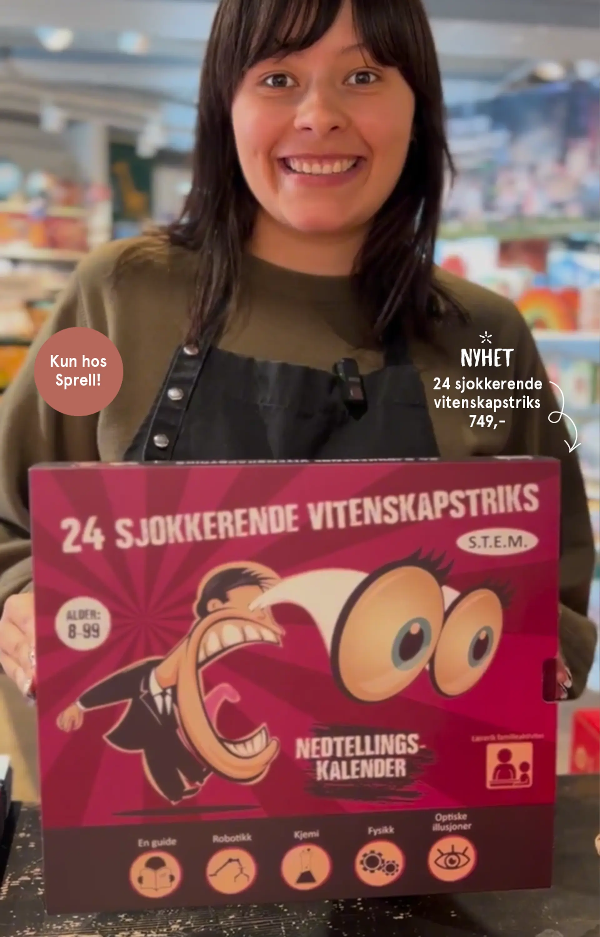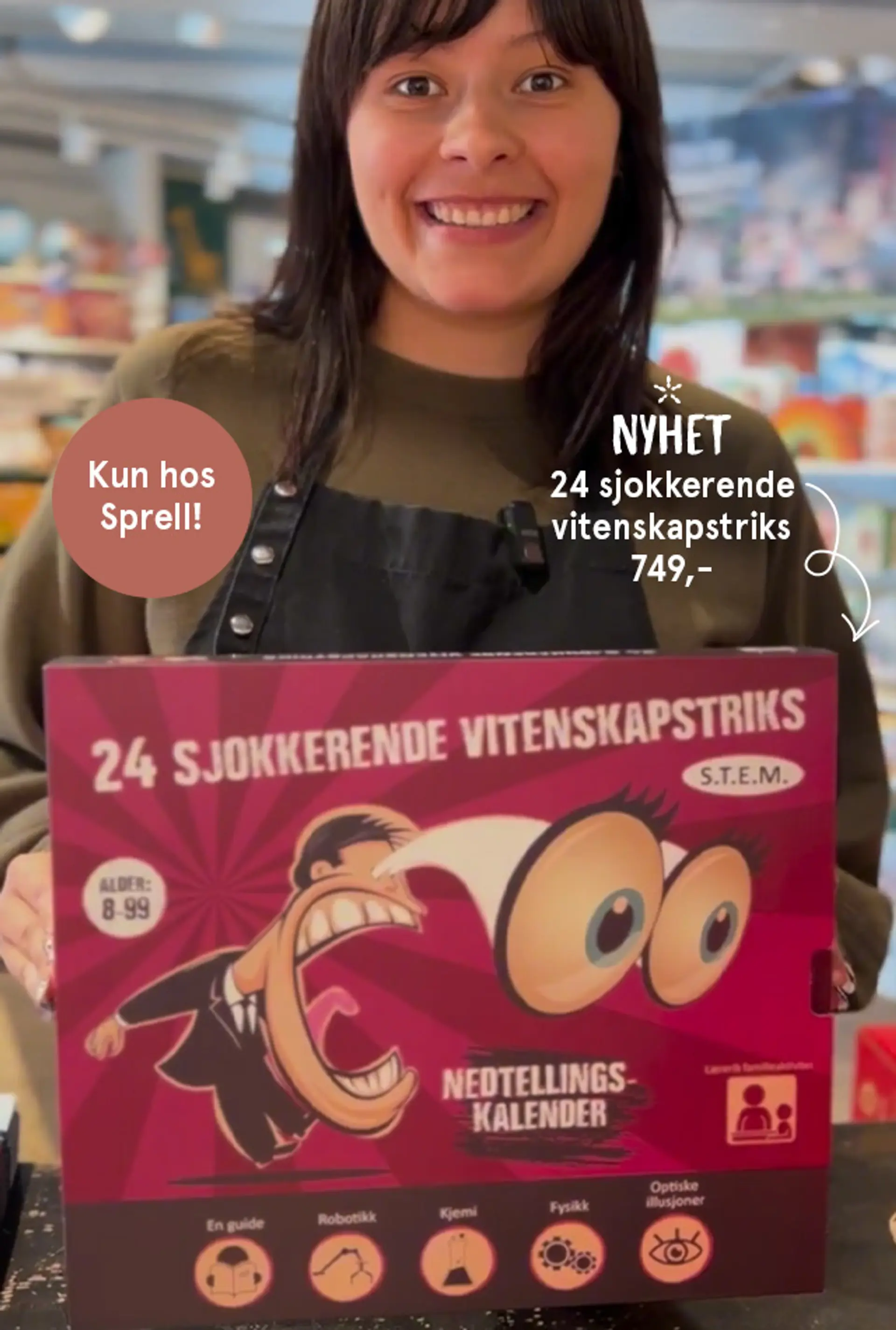 Gjør nedtellingen til jul ekstra spennende med denne morsomme julekalenderen! Denne unike adventskalenderen byr på 24 overraskende og morsomme vitenskapstriks som gir både latter, undring og læring 🧑🏽🔬🧪