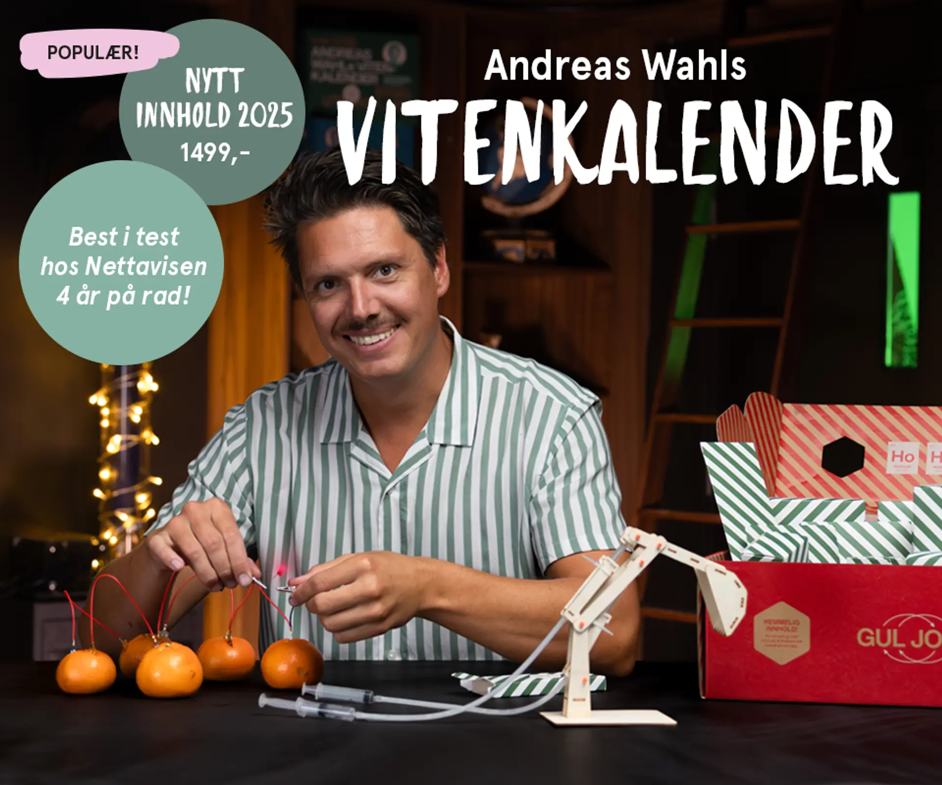 Hver dag åpnes med en video der Andreas viser eksperimentet – som å sende strøm gjennom folk, implodere bokser eller gro et kjemisk juletre. Det meste følger med, og resten finner du på kjøkkenet hjemme.