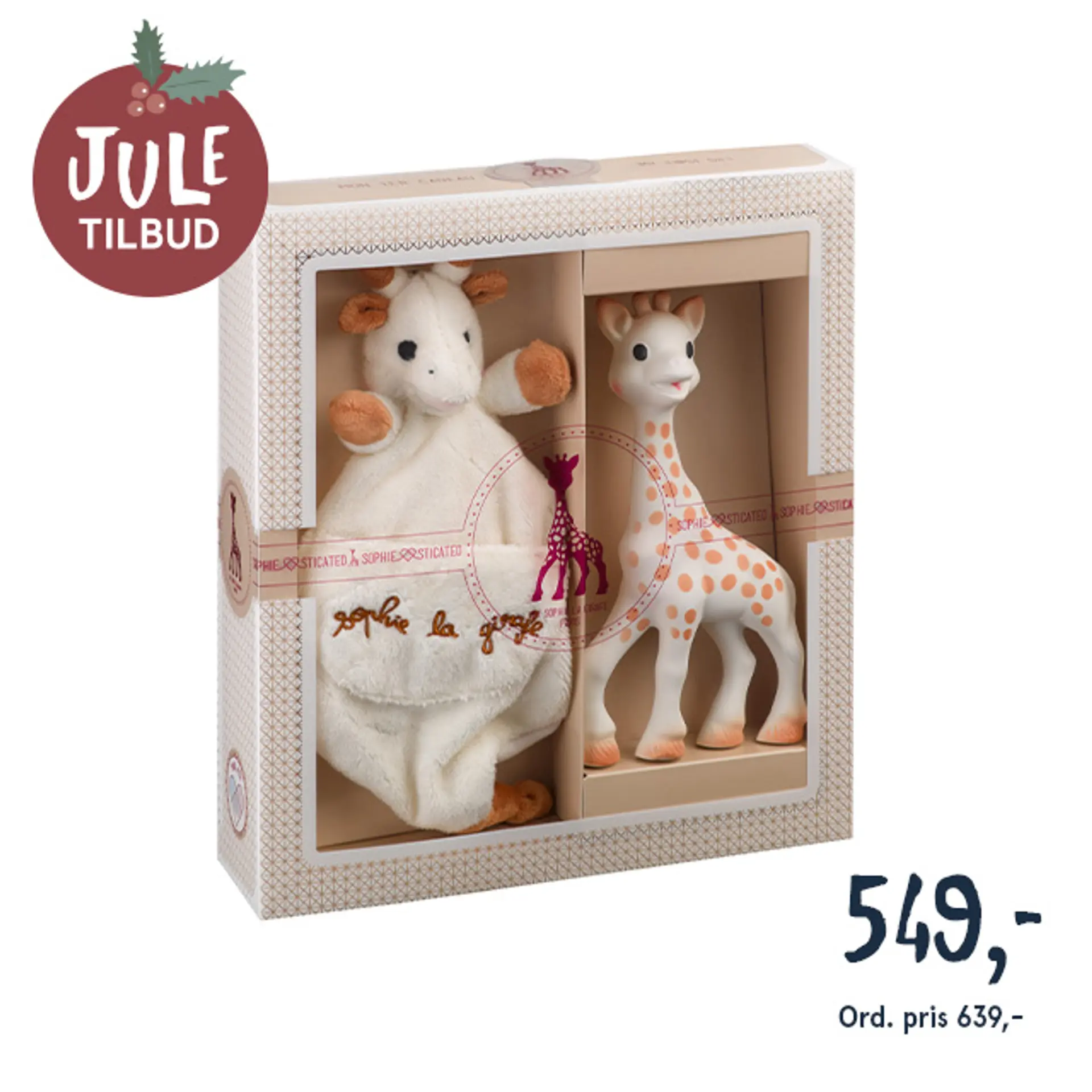 Gaveesken inneholder den populære biteleken og en søt koseklut fra Sophie la girafe.