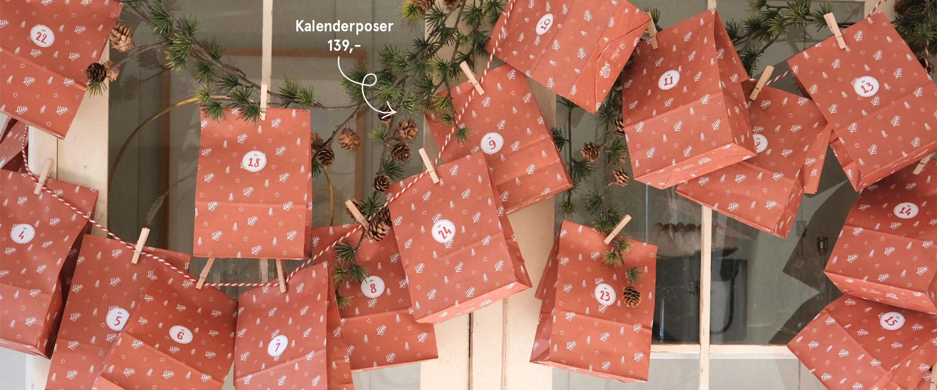 Pakk inn den hjemmelagde julekalenderen i kalenderposer med herlig julemotiv. Klistre på tall fra 1 til 24 og heng den dekorative adventskalenderen opp. Eller velg en julekalender med lommer som kan brukes år etter år, og er supert for miljøet! Den gjenbrukbare kalenderen er holdbar og glir fint inn i barneromsinteriøret med sitt klassiske design.