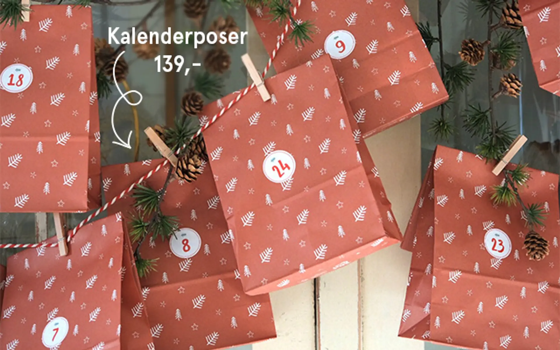Pakk inn den hjemmelagde julekalenderen i kalenderposer med herlig julemotiv. Klistre på tall fra 1 til 24 og heng den dekorative adventskalenderen opp. Eller velg en julekalender med lommer som kan brukes år etter år, og er supert for miljøet! Den gjenbrukbare kalenderen er holdbar og glir fint inn i barneromsinteriøret med sitt klassiske design.
