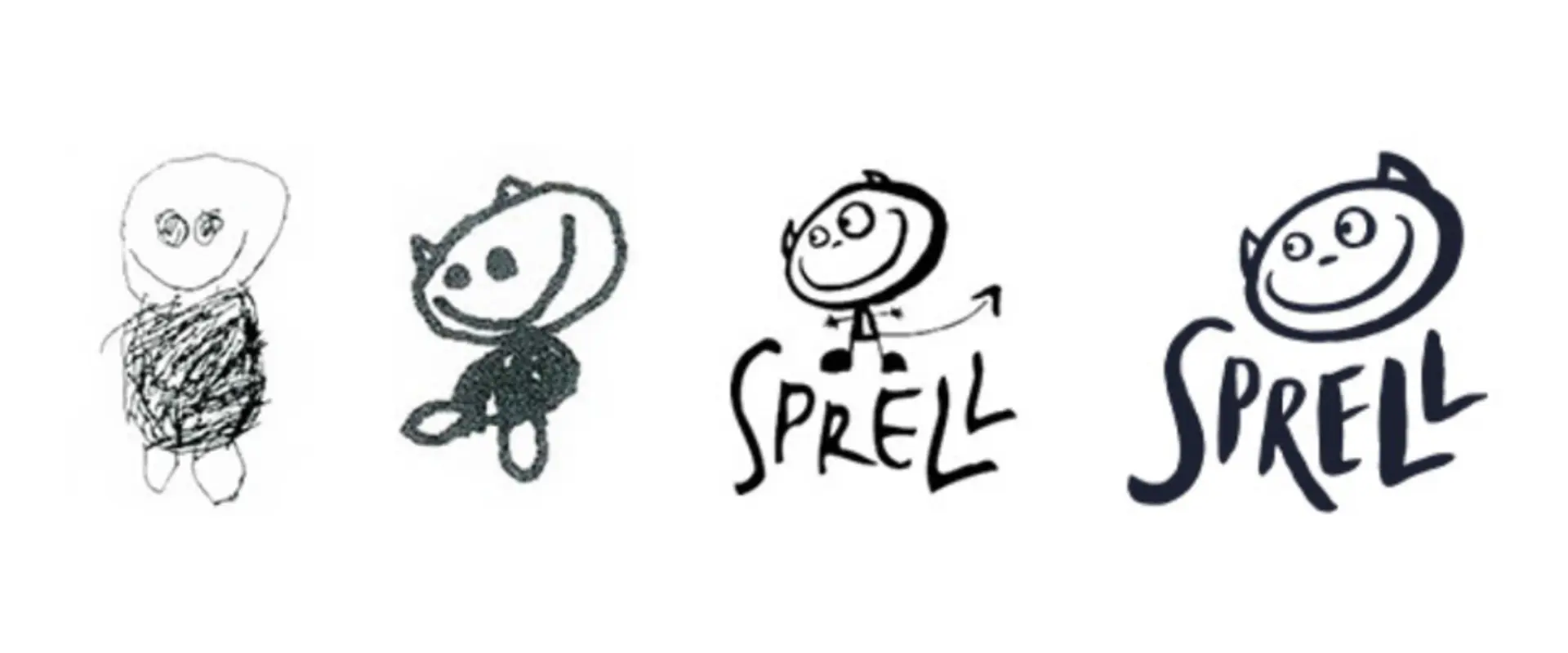 Også logoen vår bærer en historie. Den stammer fra en tegning laget av en vordende storesøster, hjemme hos familien Arnesen. Et portrett av lillebroren, fullt av personlighet og energi. I dag er figuren blitt et symbol på alt som er Sprell: glede, fantasi og lek uten grenser.