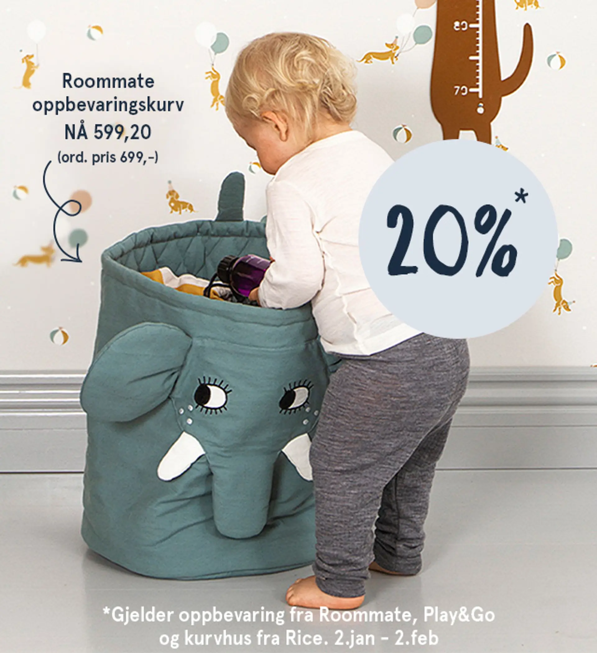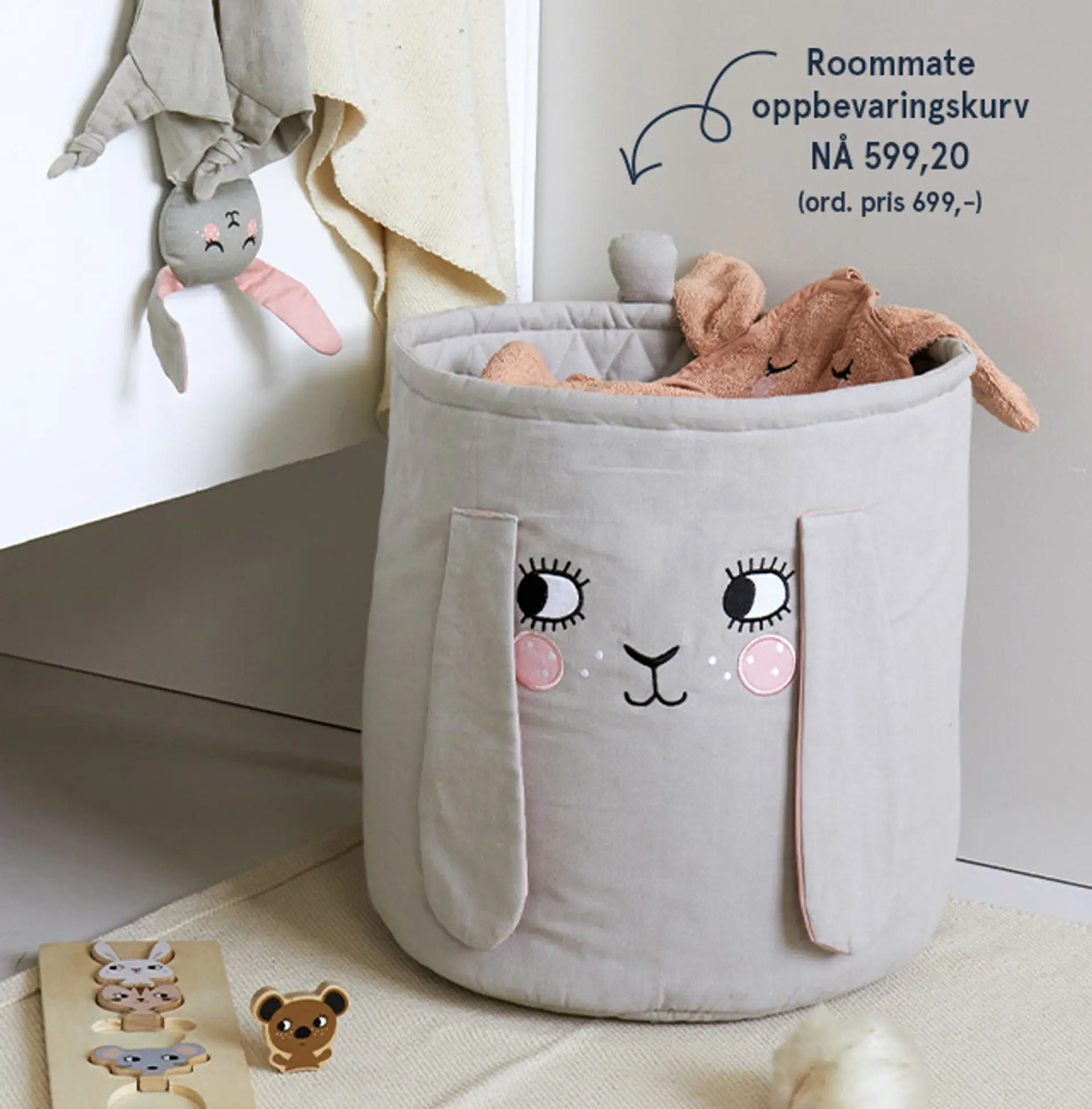 Produktene ffra Roommate er laget av minst 70% økologisk dyrkede materialer og er GOTS-sertifiserte, noe som sikrer miljøvennlighet og trygghet gjennom hele produksjonen. Gøy design som spriter opp barnerommet, og som gjør rydding ekstra gøy for barna.
