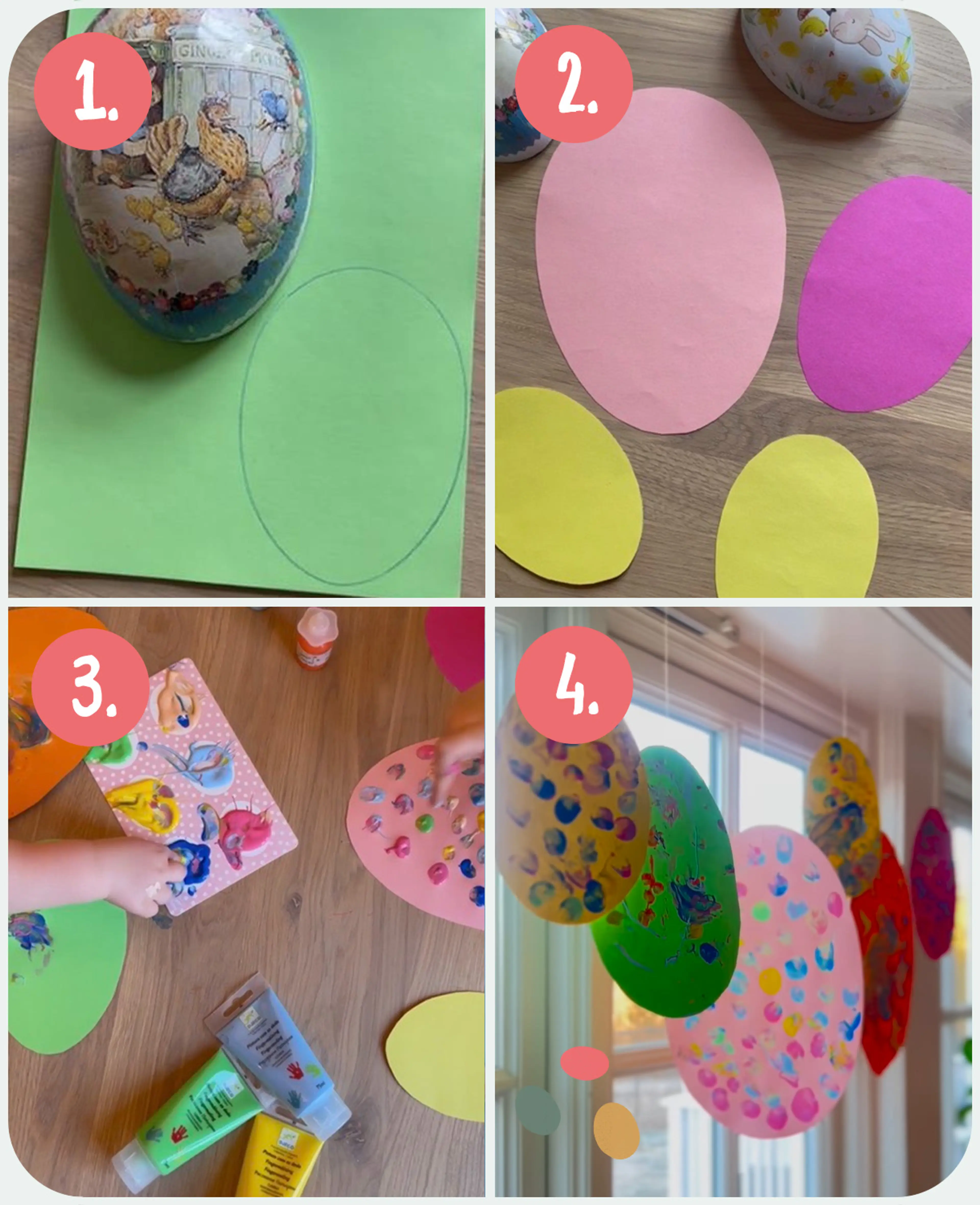 - Finn frem fargeark, blyant, saks og påskeegg som mal