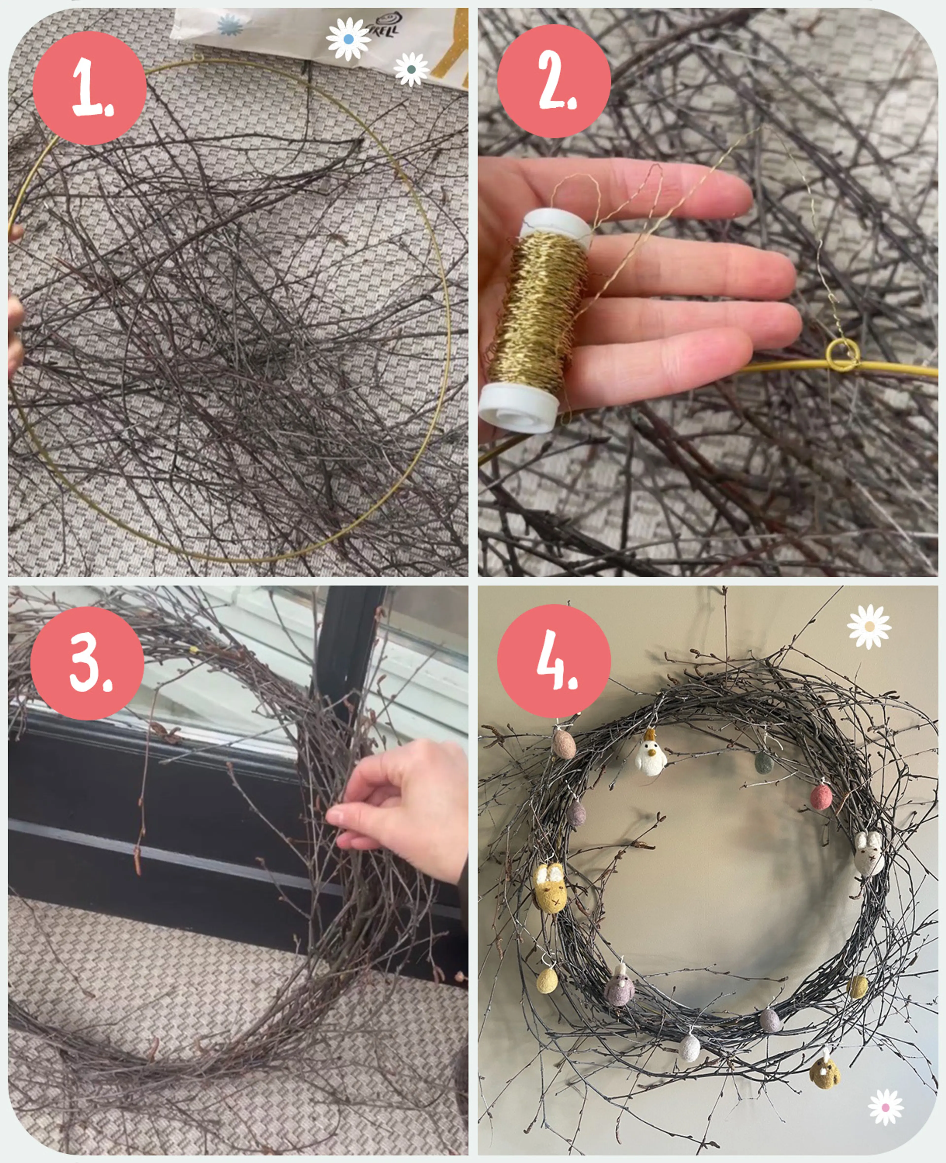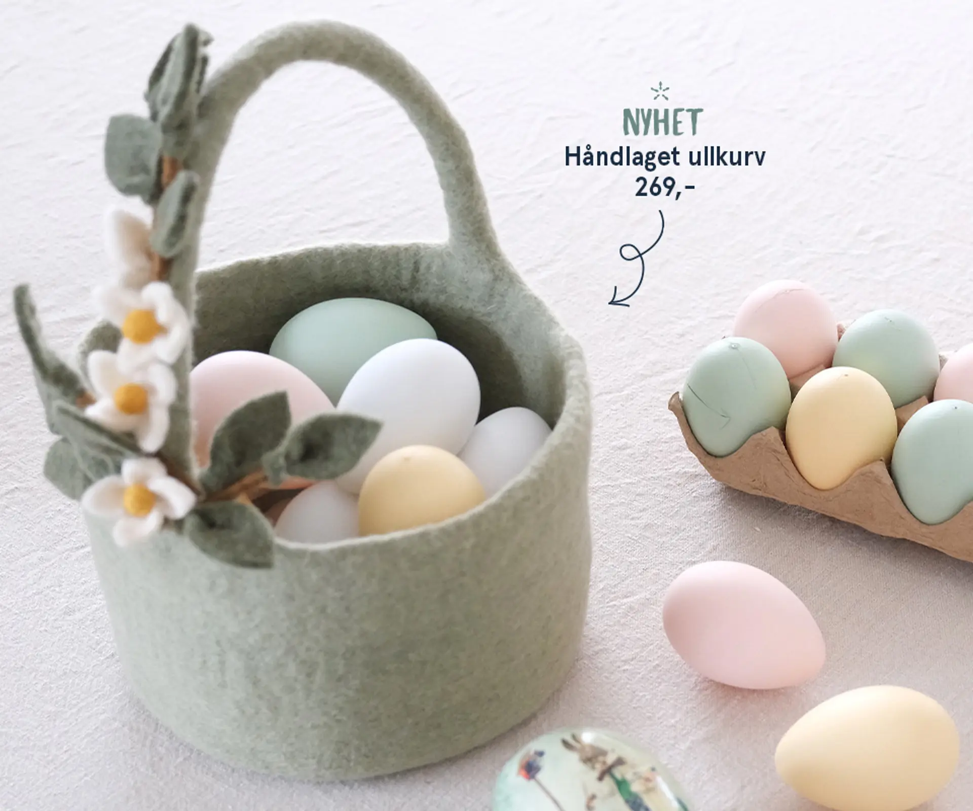 - Pynt med ønsket påskedekorasjon. Vi har brukt påskepynt fra En Gry og Sif som du finner i alle butikkene våre