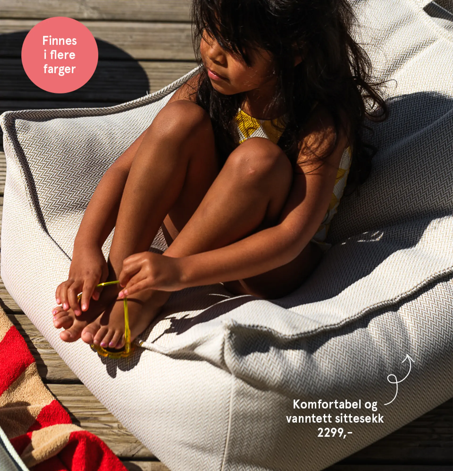 Etter fart og lek er det fint med et sted å lande. Den vanntette sittesekken gjør det enkelt å lage en lun kosekrok på terrassen, i hagen eller på verandaen, perfekt for en bok, en liten hvil eller bare noen rolige minutter i solen.
