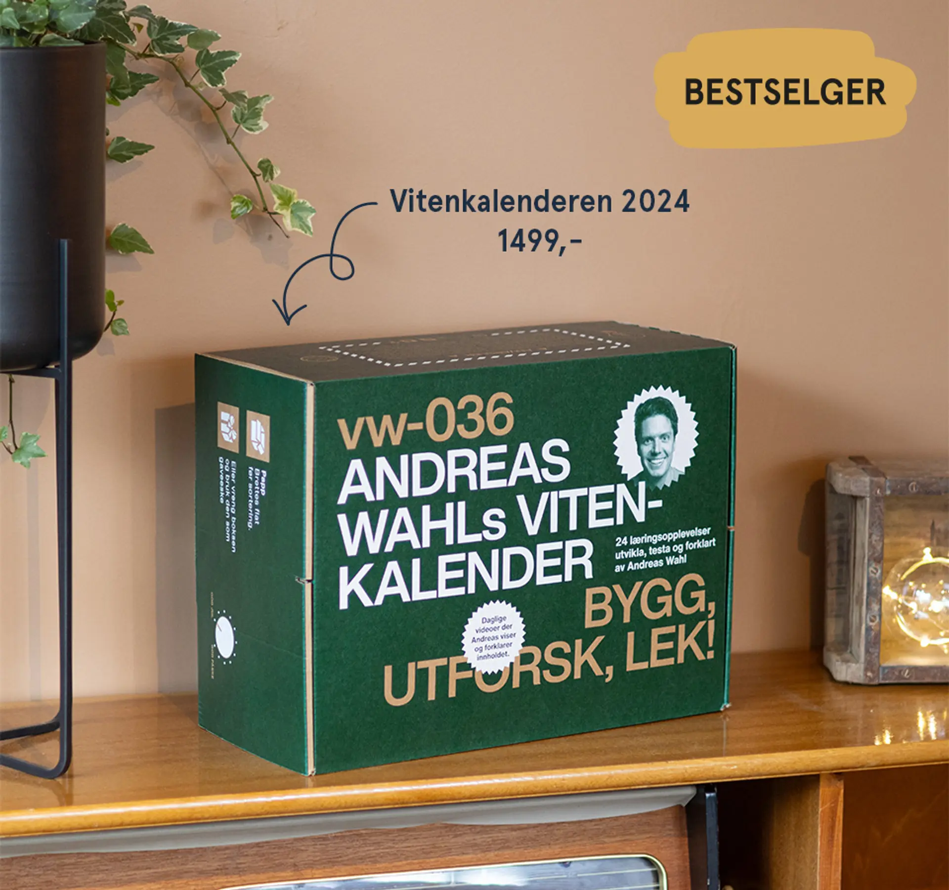 Andreas Wahl har satt sammen og pakket inn 24 smågaver for lek og læring i den kule adventskalenderen som blir en kundefavoritt år etter år. Hver dag får du tilgang til en video hvor du kan åpne kalenderen sammen med Andreas, hvor han viser og leder deg gjennom dagens luke - Dette skjer på Vitenkalenderens helt hemmelige videotjeneste! Alle kalendergavene er pakket inn i røde og hvite kalenderposer, og er merket fra 1 til 24. Det hele leveres i en eske som er fin nok til å stå framme 24 dager til ende, om du ønsker det.